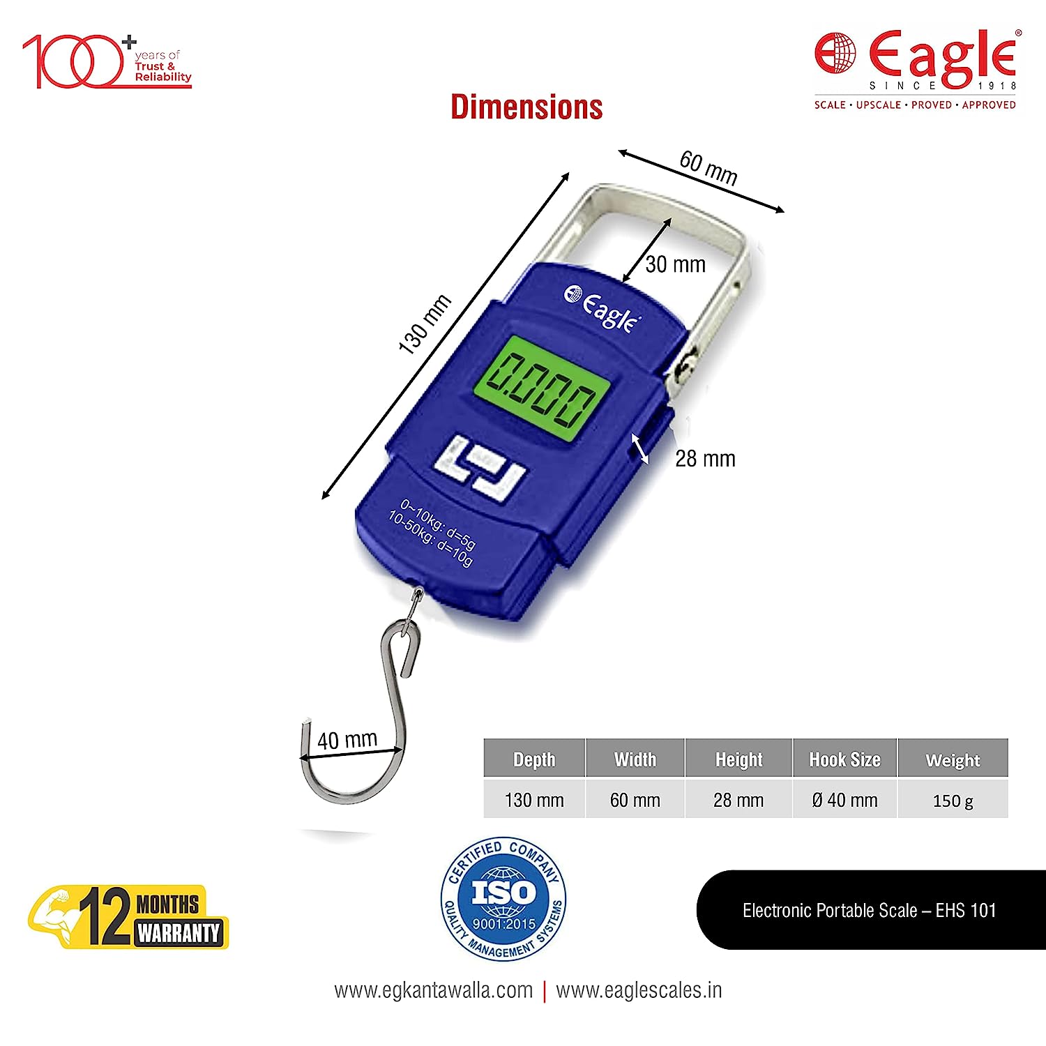 Eagle Metal Luggage Weighing Scale, 50 kg Vapacity, Accuracy 5 g/10 g, Hanging Digital Weighing Machine for Luggage, Portable, Electronic Weight Machine for Luggage, Flight Travel, Baggage, Cylinders