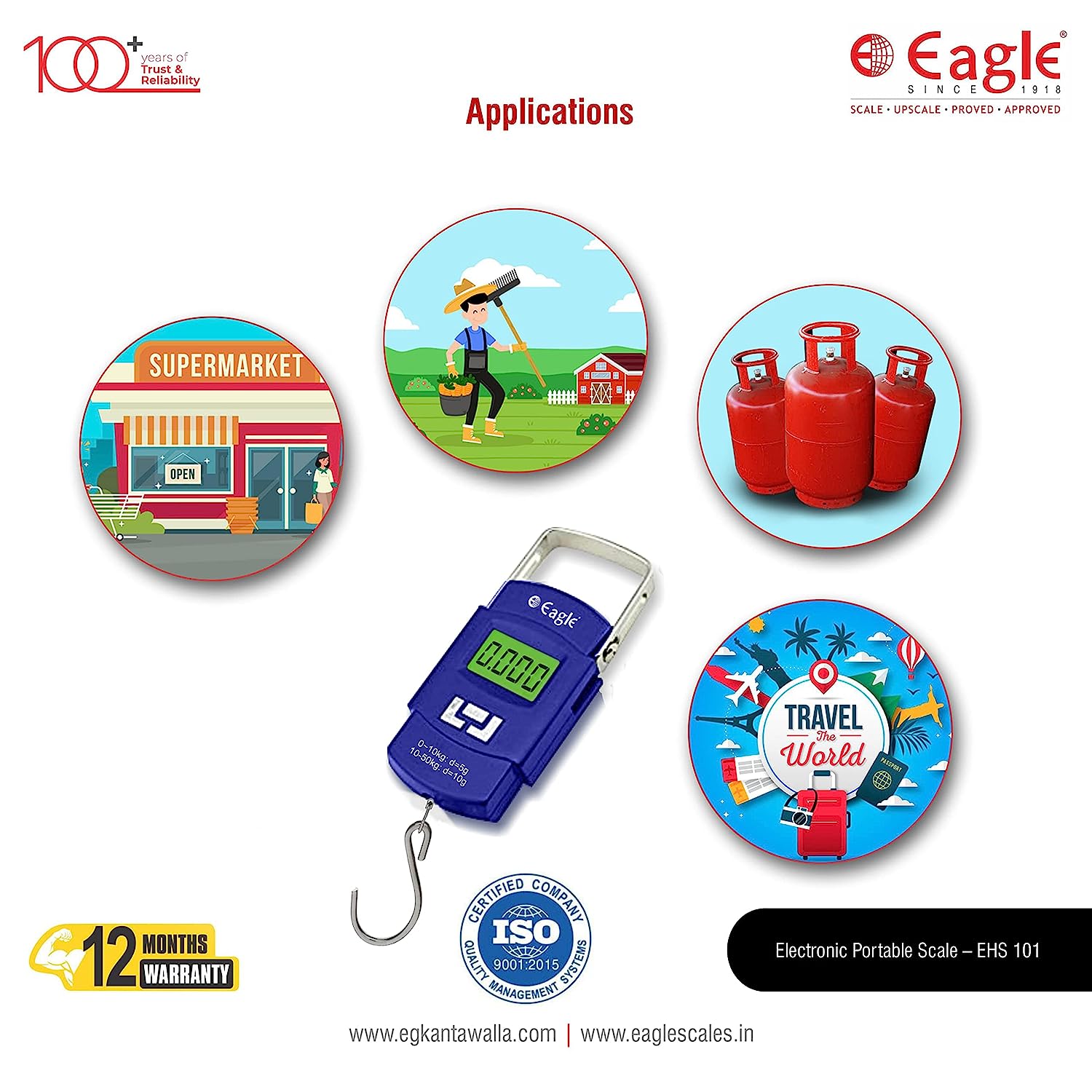 • * Warranty : Eagle is a 100 Years Old registered Indian Company & Brand aiming to bring quality innovative products. This product is idealised conceptualised for Indians. * Warranty : 1 year Replacement Warranty Against Any Manufacture Defect ( Breakage of Weighing Scale, water damage, batteries, general wear and tear are excluded ). This weighing scale is a smart choice for Grocery Shops, Supermarkets, Travelling, Gas agency's, Airports or Railway Stations.