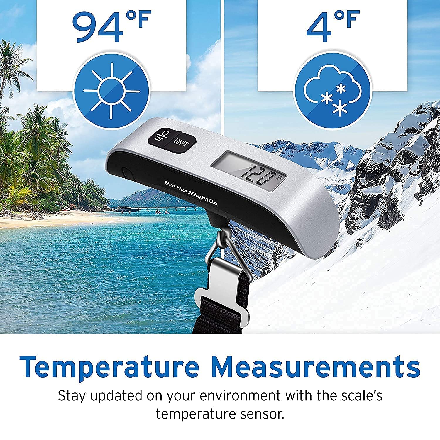 • Measure all of you bags before reaching the airport so you're no longer caught with overweight fees Avoid Embarrassing Situation At airport Unlike Other With Green Back Light LCD screen display with green backlight. Firm strap with Simple and convenient buckle High quality durable rugged handle ,handgripped scale .Fast response and stable performance.