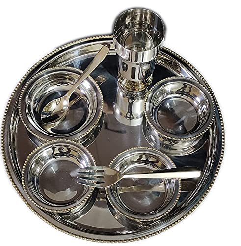 • Included :- 1 Pcs Thali, 1 Pcs Glass , 4 Pcs Bowls, 1 Pcs Spoon with 1 folk