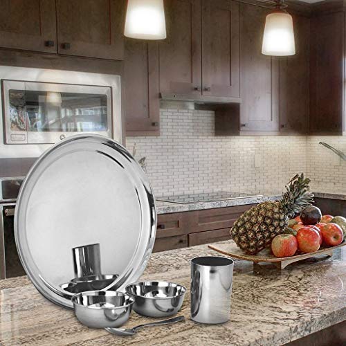 • Package Contents: 1 Piece Dinner Thali,2 Piece Bowl katori, 1 Piece Glass,1 piece Dinner spoon.