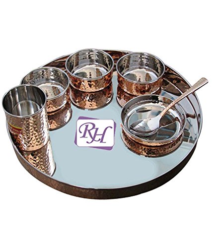• Color: Silver and Copper Material: Stainless Steel and Copper : Weight:2100 g Approx Steel Copper Dinner Set