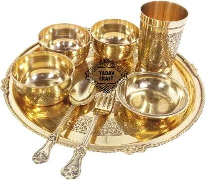 • This beautiful Brass dinner thali set has been handcrafted by skilled Indian craftsmen with care and is of exceptional quality.