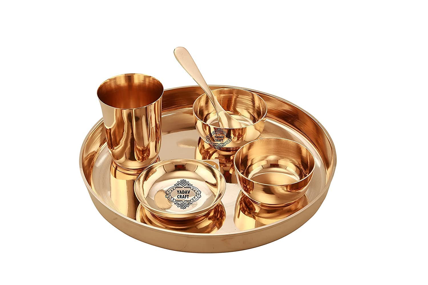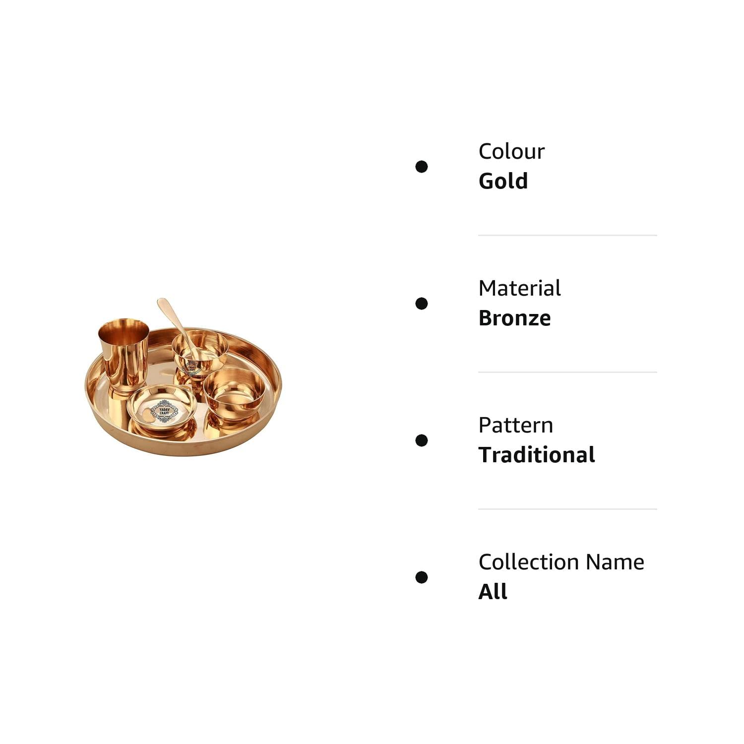 Bronze Dinner Thali Set - 6 Pieces, Gold