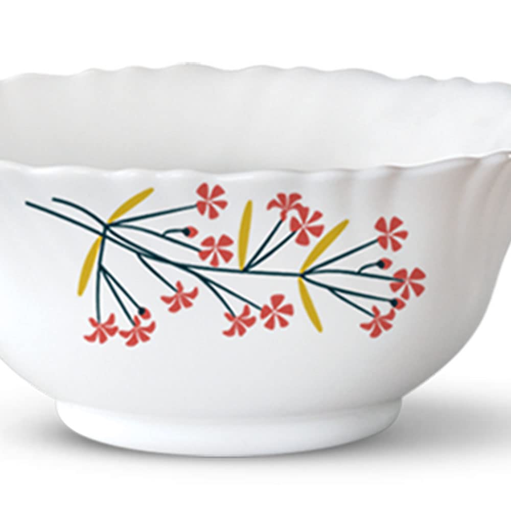 • ????️ 6 Pieces Larah by Borosil Dinner Set - The flowery silk series of dinner set consists of 2 full plates, 2 veg bowls & 2 mini-veg bowls.