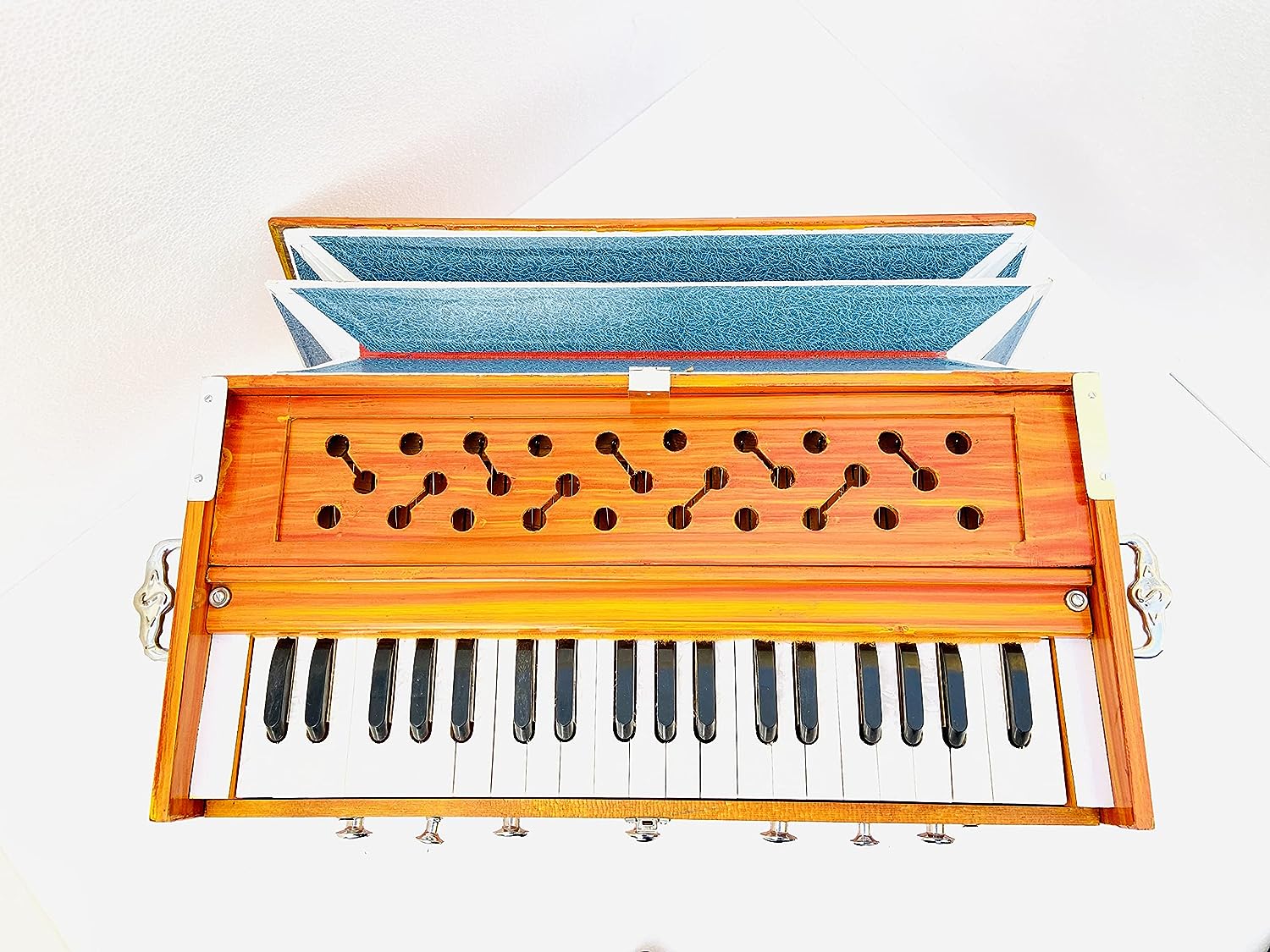 • Harmonium with 39 Keys, 7 Stoppers and Double Bellow with two Reeds (1 Bass and 1 Male).
