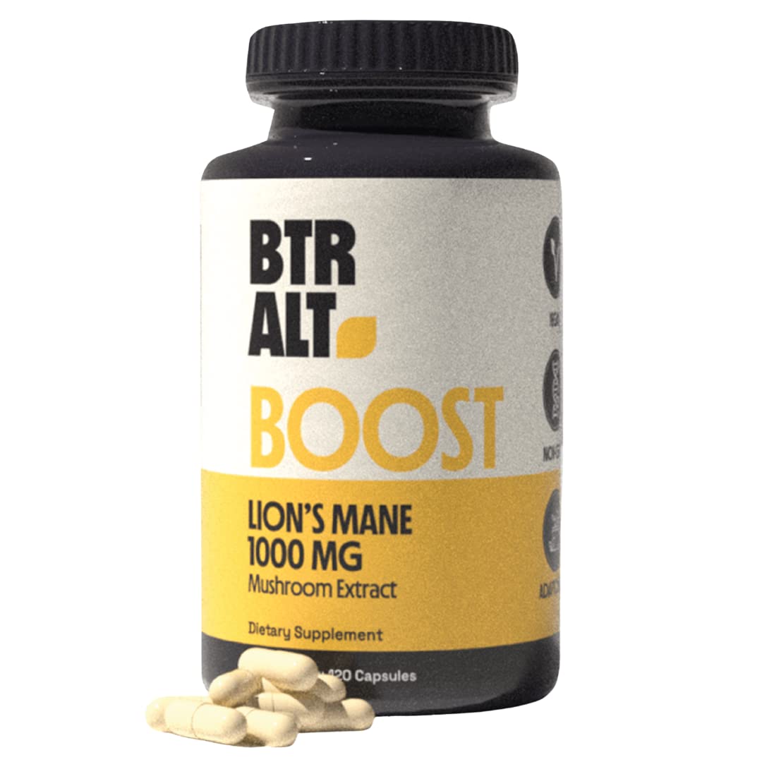 Better Alt Lions Mane Mushroom Supplement, 100% Lions Mane Powder, Vegan Mushroom Supplement, Energy Supplements |120 Count | 2 Months Supply