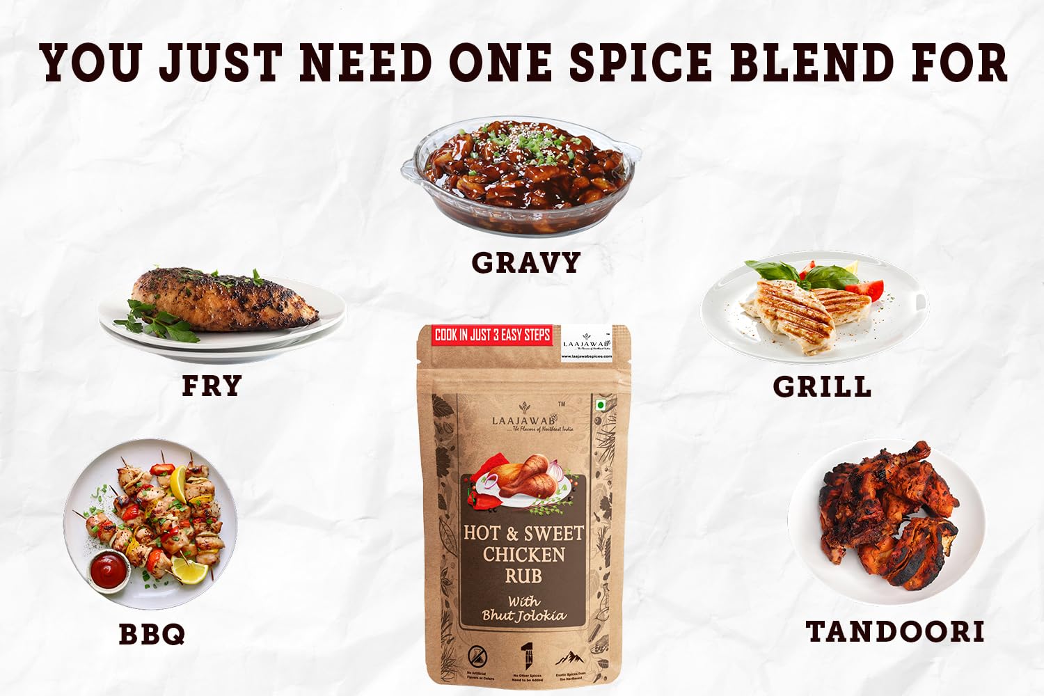 - MAKES COOKING MUCH EASIER - With Laajawab rubs the whole process of cooking Chicken has never been easier before. You just need this rub and a bit of cooking oil to marinate the Chicken and then cook it with the method of your choice in a lesser amount of time. The ingredients in the rub make the Chicken tender and juicy in a short period of time.