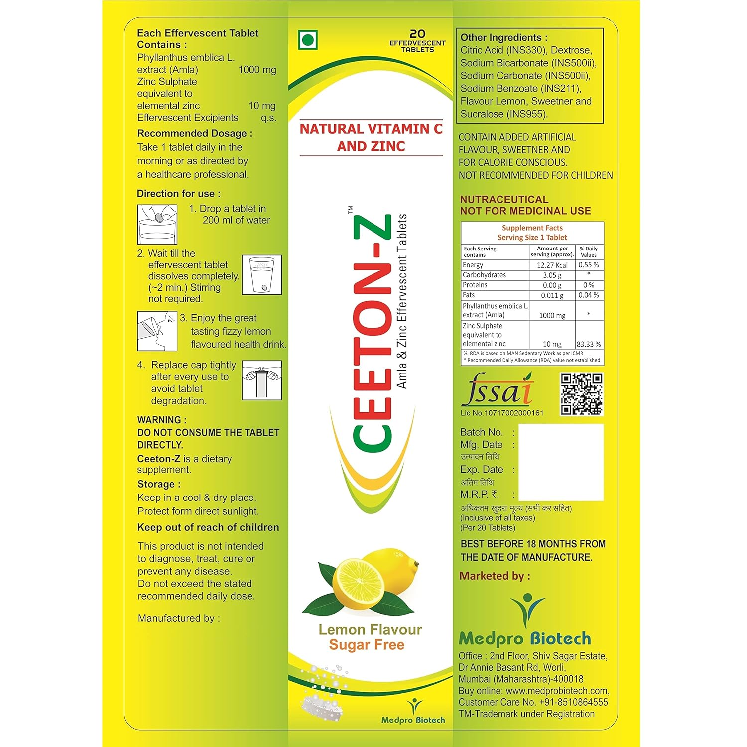 - Recommended Dosage: Take 1 tablet each of Glutax 1000 and Ceeton-Z daily in the morning on empty stomach. Drop it in water, let it dissolve, and drink it after. Store in a cool & dry place away from sunlight and moisture.