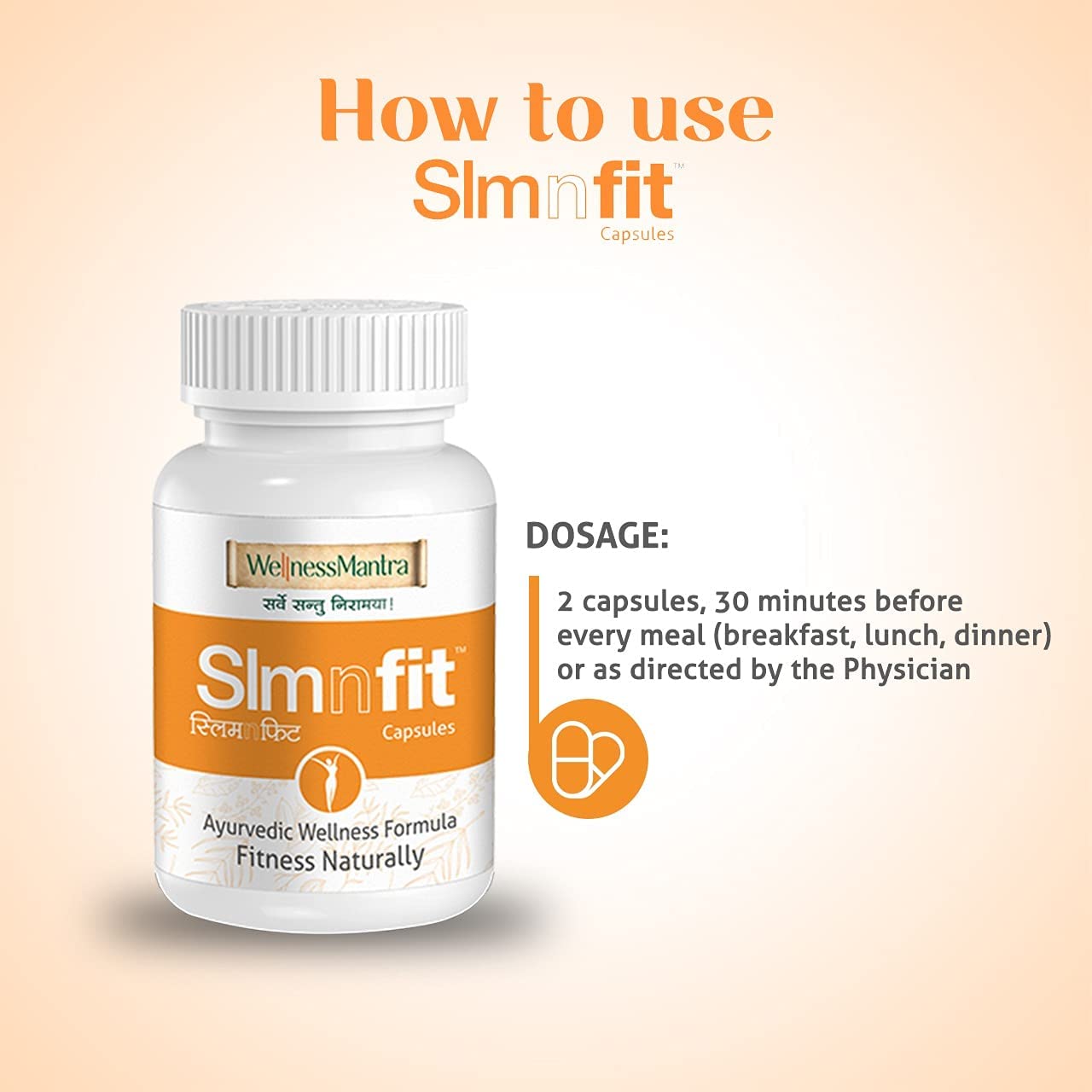 - SLMNFIT Capsules is a 100% ayurvedic product. Effect may vary from individual to individual. Recommended to be consumed daily, consistently for at least 3 months for a positive altering effect.
