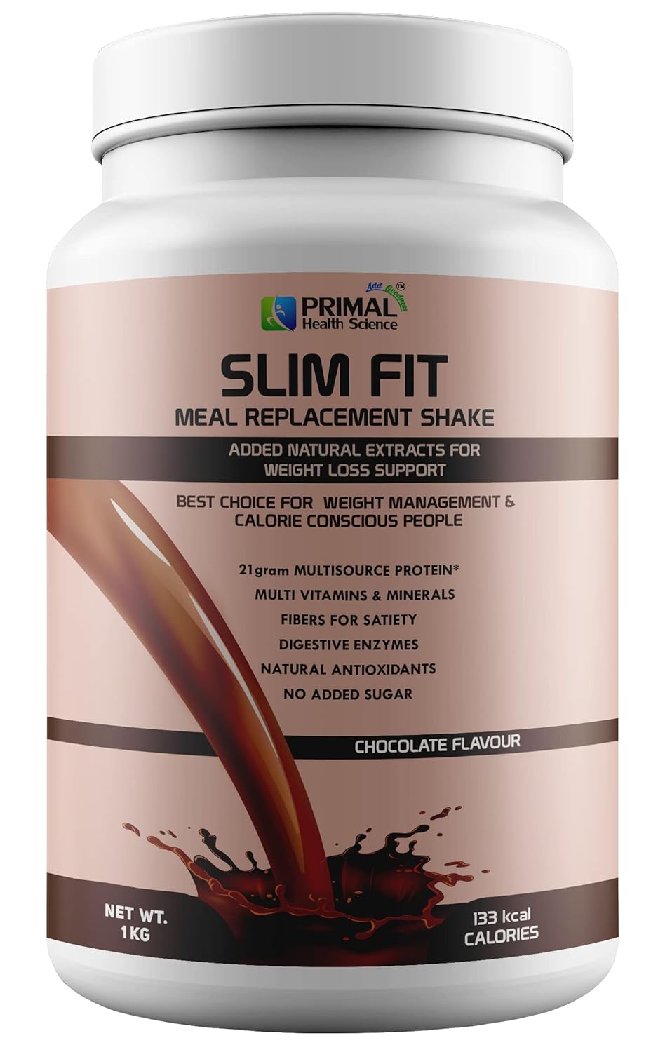 - ???? COMPLETE NUTRITIOUS MEAL REPLACEMENT: PRIMAL HEALTH SCIENCE Slim Fit Meal Replacement Shake has been made to replace one-time/two-time meals with the goodness of 27 Vitamins & Minerals, 2g of Dietary Fiber, and 12g of Protein (per serving of 40g). This nutritious meal-replacement shake will allow you to maintain strength, stamina, and energy with its nutritious blend during your weight-loss journey.