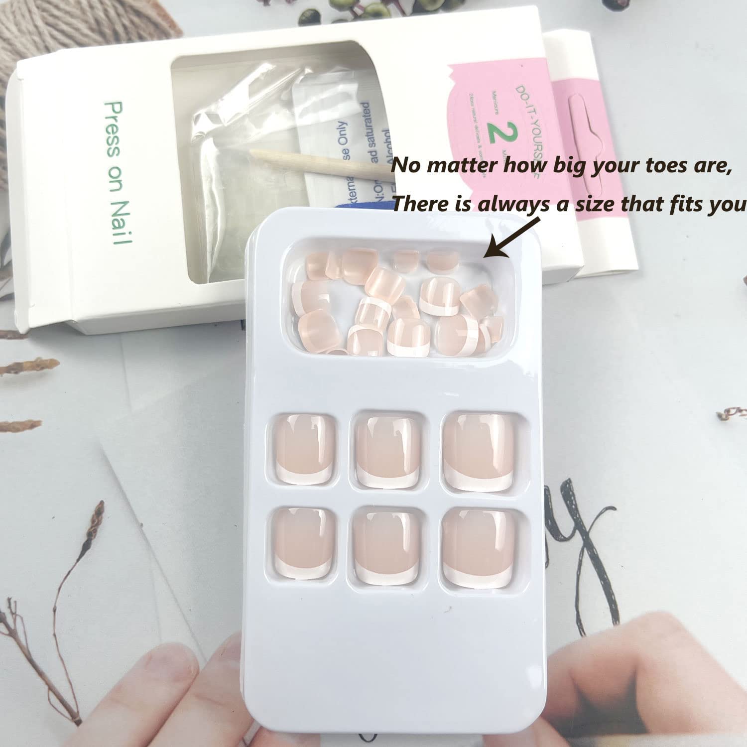- 【Package Contains】You will get 24 pieces of short Toenails press on nails for women's daily wear. The package contains 1pcs nail glue sticker sheet, 24pcs nail adhesive tabs.
