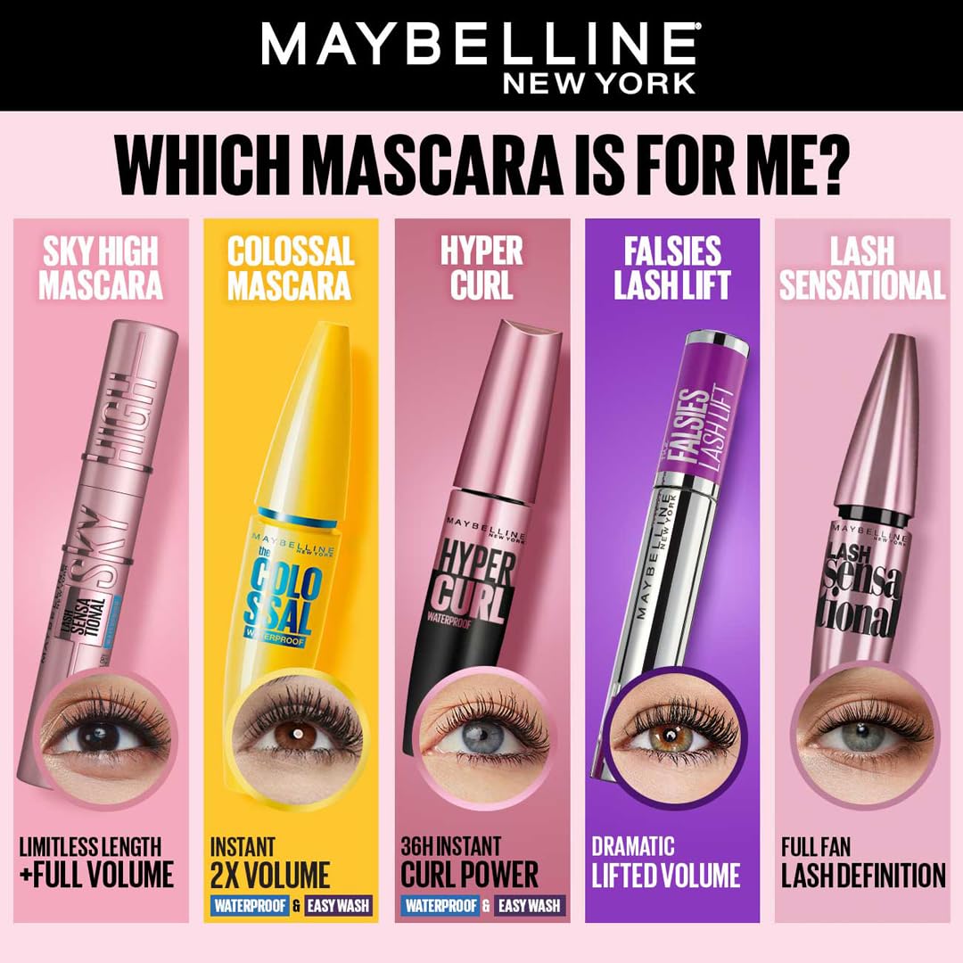 - Contents: 1x Maybelline New York Falsies Lash Lift, Transfer proof Mascara, No Clumps, Volumizing, Shade: Black, 8.6ml
