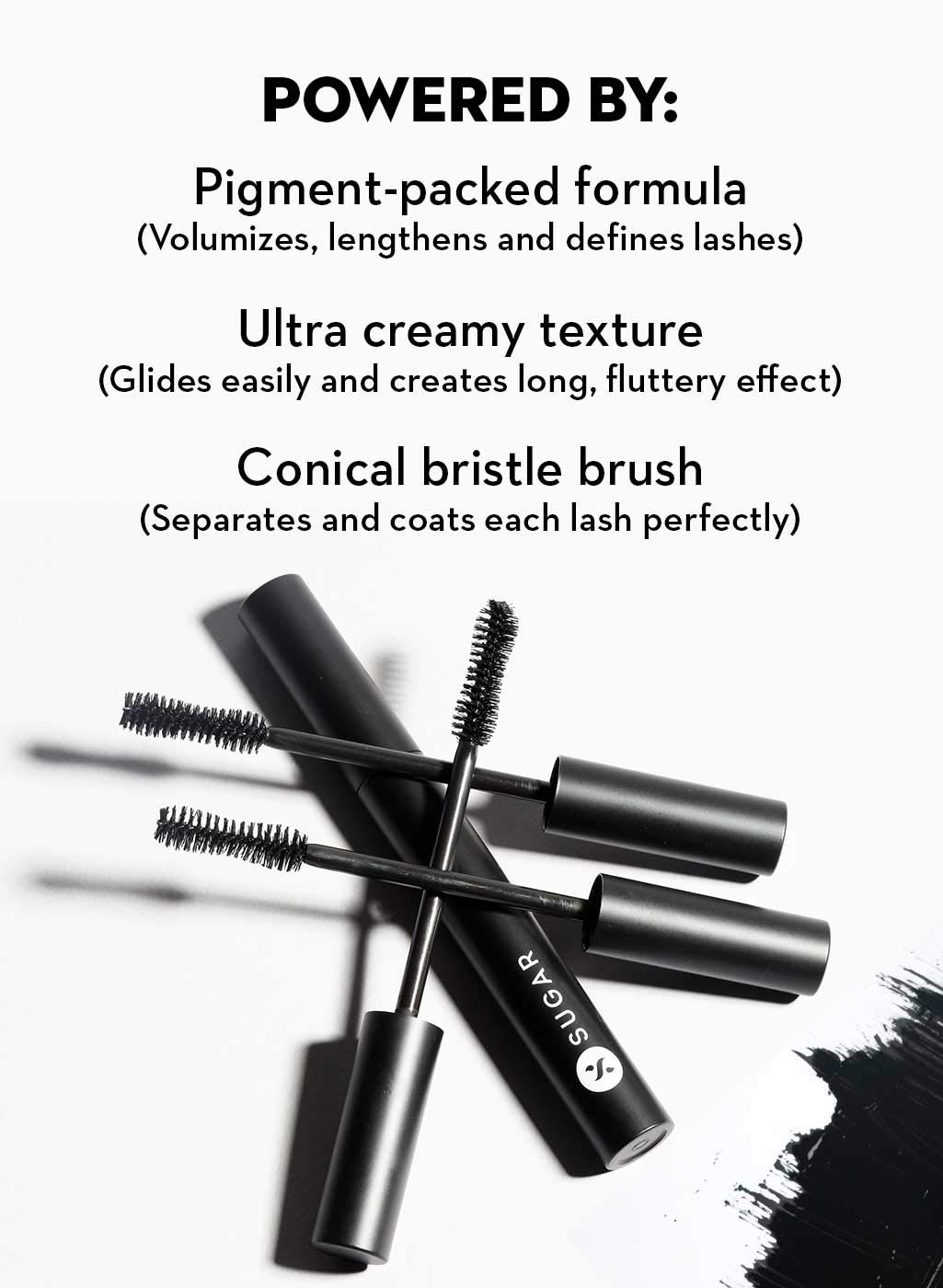 - This volumizing mascara is designed with an ultra-black formula that lengthens, amplifies and adds volume to your lashes in a single stroke