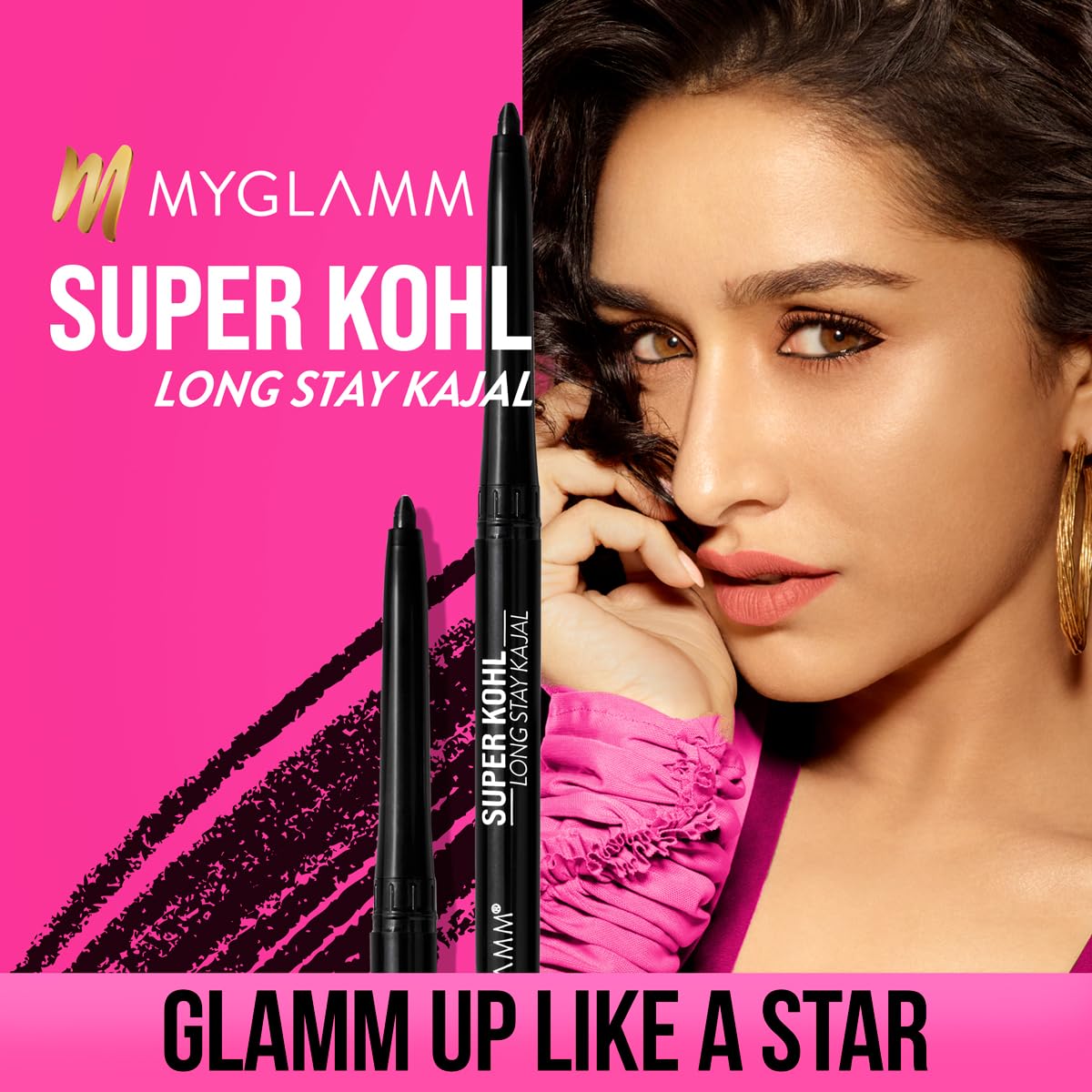 Super Kohl Long Stay Kajal Matte Finish - 0.3g | Black Eye Kajal Pencil | Long Lasting, Waterproof, Smudge Proof