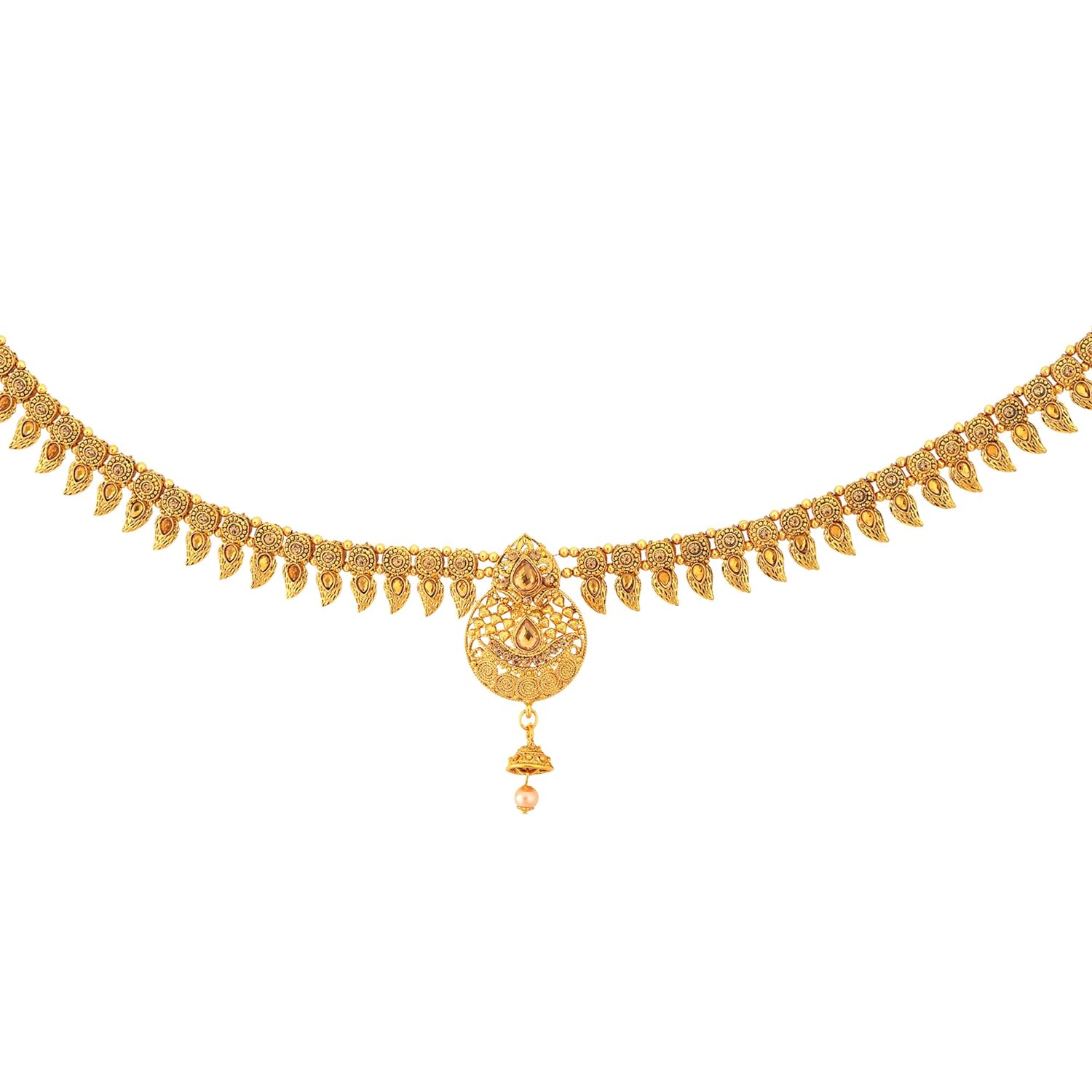 - Gold plated belly chain kamarbandh is a true work of art, featuring a unique and intricate design that sets it apart from other pieces of Jewellery. The stunning leaf design chains add an element of glamour and sophistication to the piece, making it a true statement accessory. Whether you're wearing kamarband for lehenga, any special occasion or just to add a touch of elegance to your everyday look, this kamarband is sure to make you stand out in the crowd