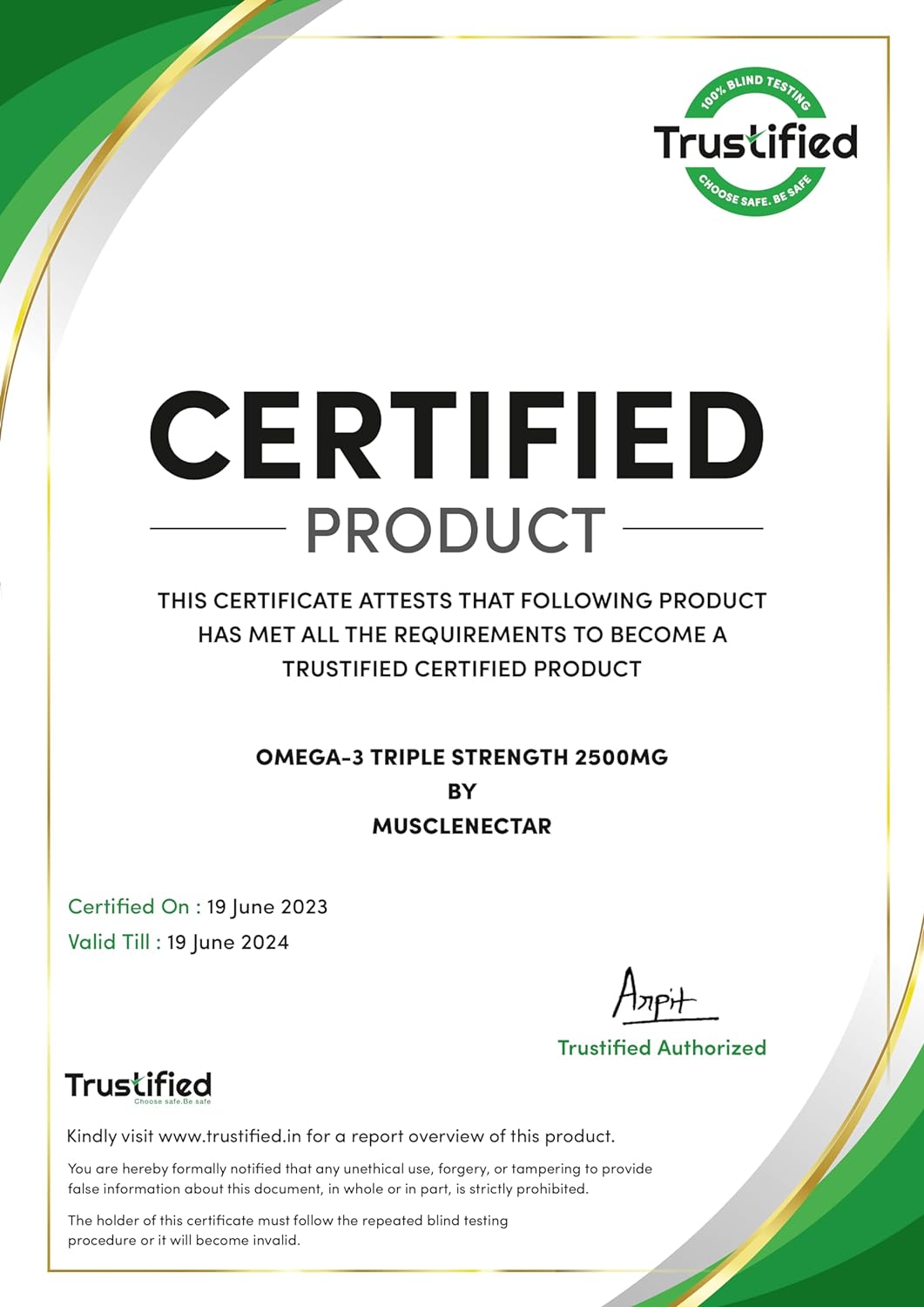 - Certified by Trustified for Blind Testing of EPA/DHA Accuracy, Tested for Heavy Metals & Rancidity.