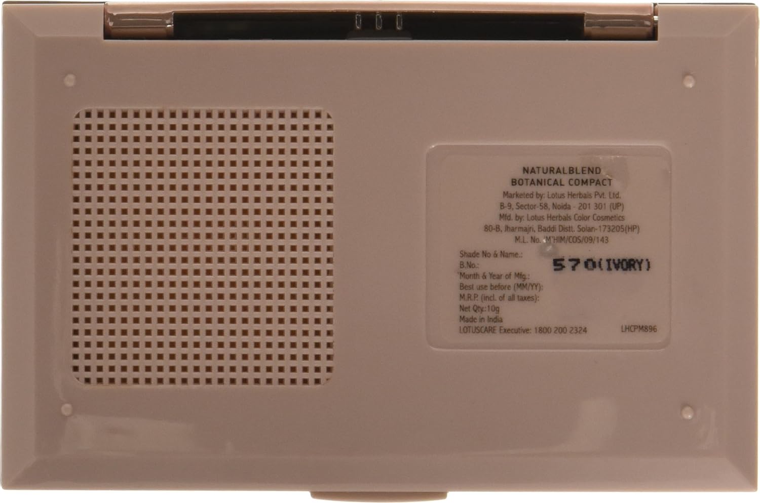 Lotus Makeup NaturalBlend Botanical Compact Ivory, SPF 25, Oil Control, UV Protection, Green Tea, 10 g