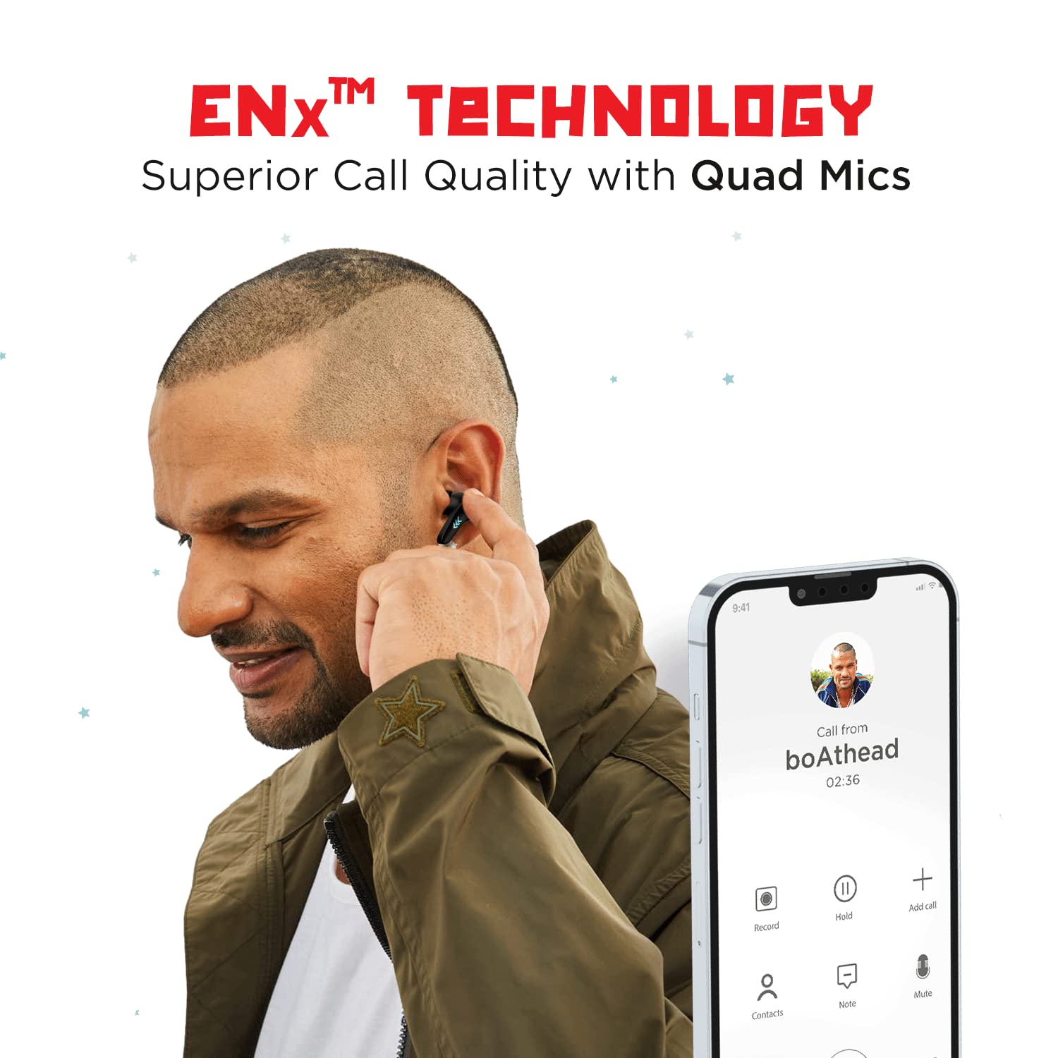- Clear Voice Calls- Be heard clear across voice calls without those usual interruptions, with the ENx Tech enabled quad mics that cancel out unwanted background noises during calls, on Airdopes 190.