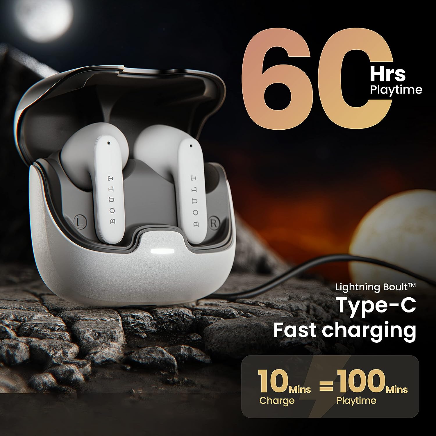 • 10 mins charge = 100 mins playtime. Lightning Boult Type-C fast charging makes this possible, getting your buds ready in no time.