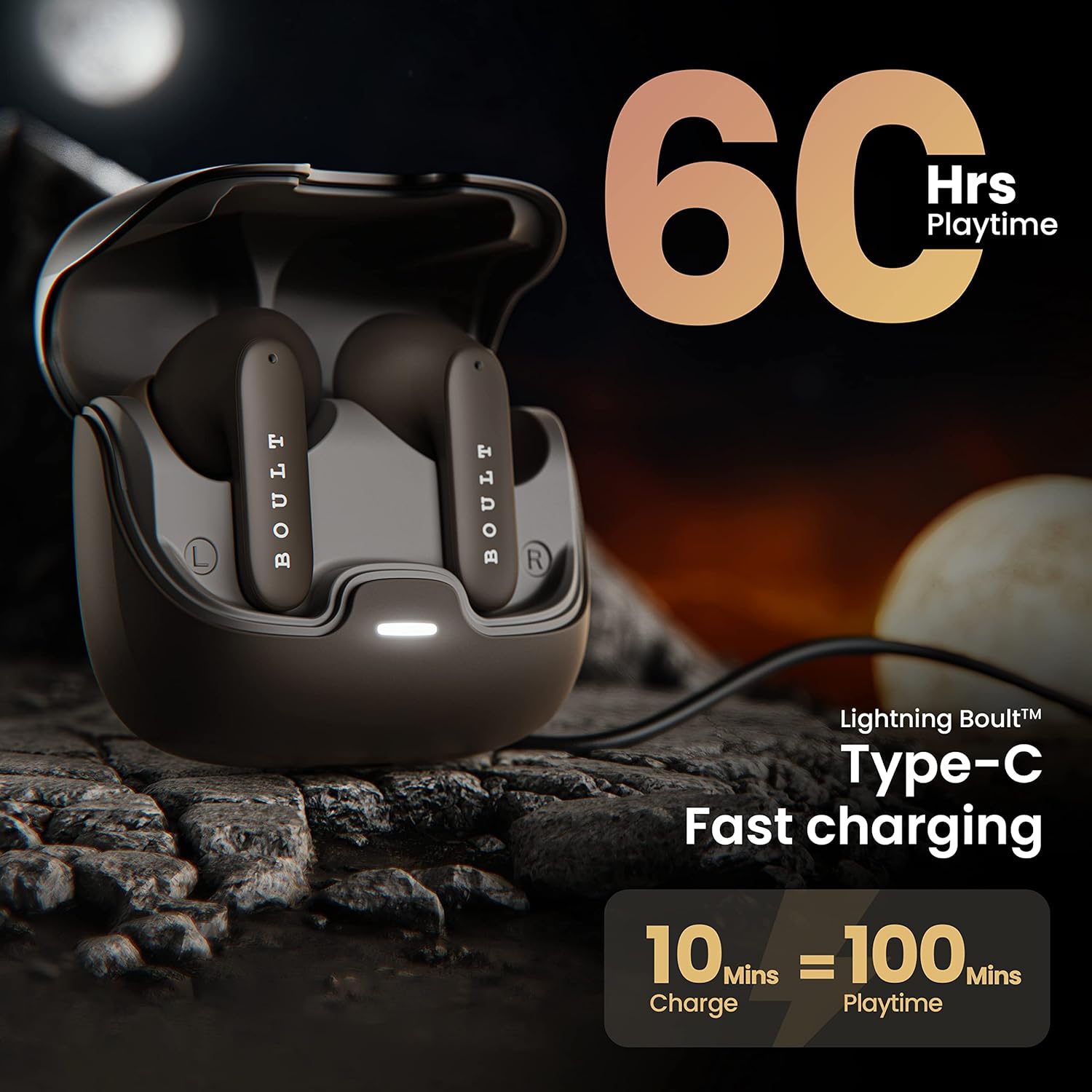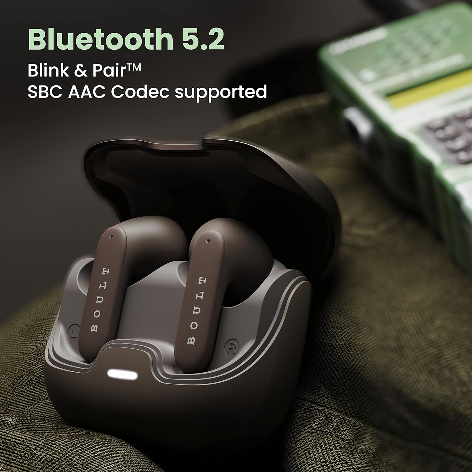 Boult Audio Z40 True Wireless in Ear Earbuds with 60H Playtime, Zen™ ENC Mic, Low Latency Gaming, Type-C Fast Charging, Made in India, 10mm Rich Bass Drivers, IPX5, Bluetooth 5.3 Ear Buds TWS (Brown)