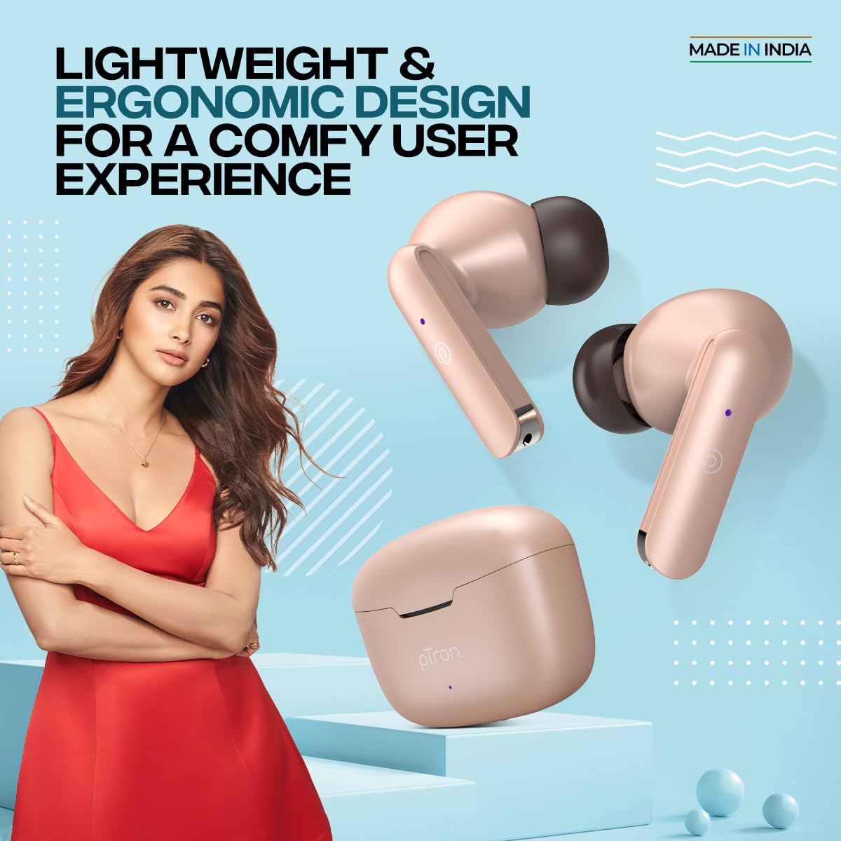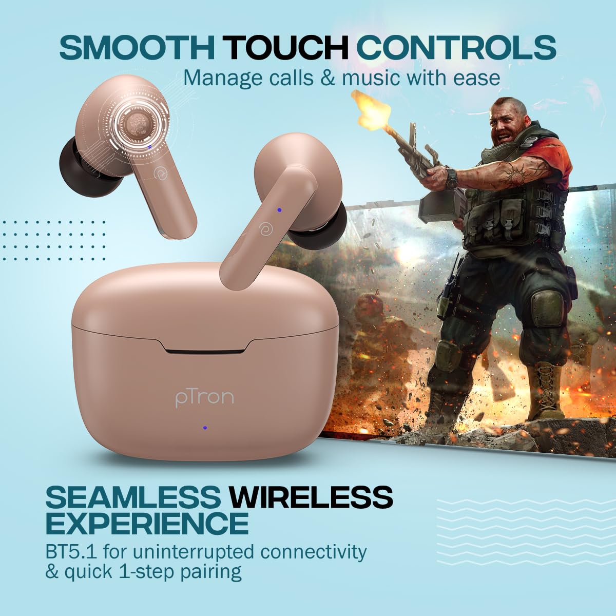 pTron Bassbuds Duo In-Ear Wireless Earbuds with Immersive Sound, 32Hrs Playtime, Clear Calls TWS Earbuds, Bluetooth V5.1 Headphone, Type-C Fast Charging, Voice Assistant & IPX4 Water Resistant (Brown)