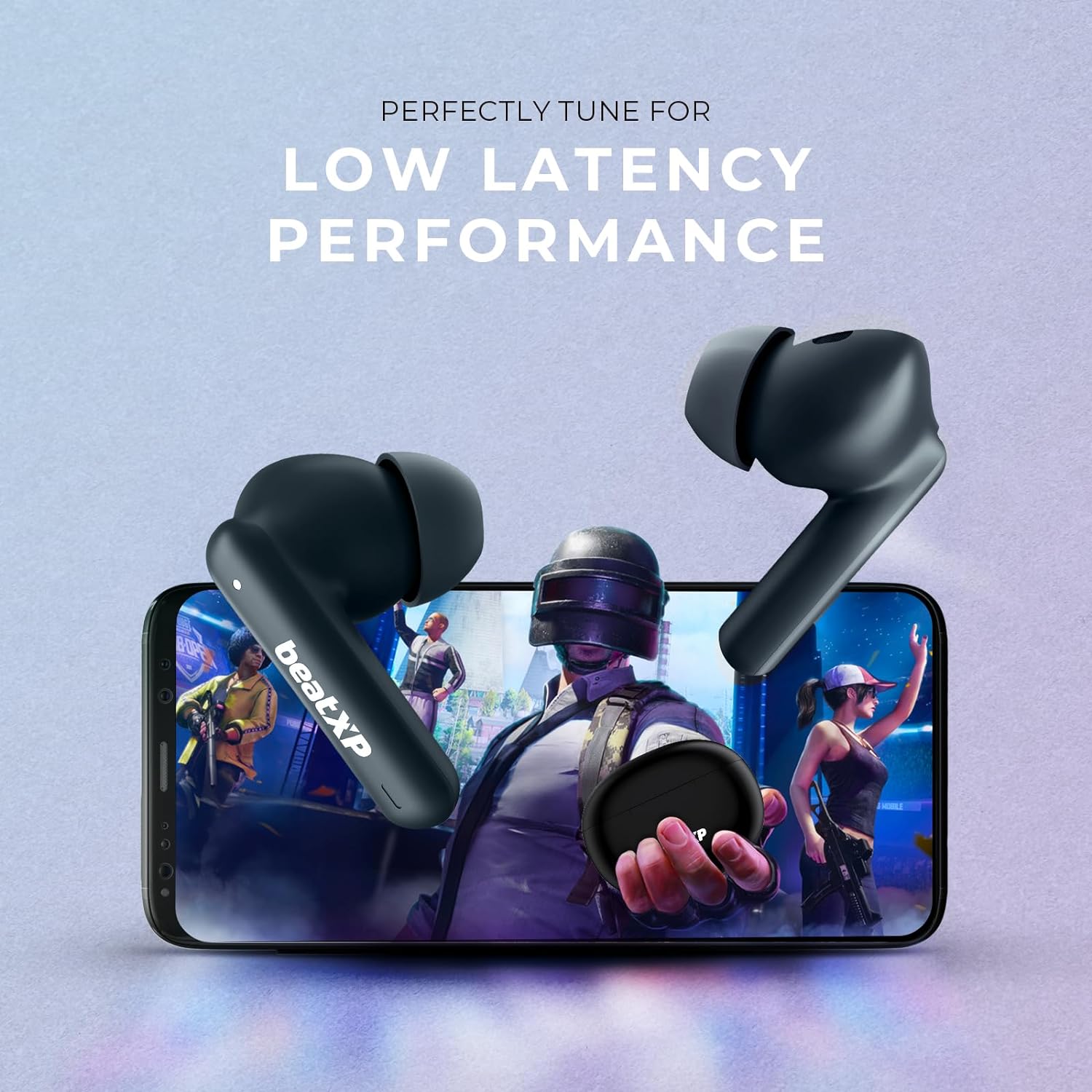 beatXP Tune XPods Bluetooth True Wireless Ear Buds with 50H Playtime, Quad Mic ENC Tech, Low Latency, Type C Earphone with 10mm Drivers, IPX5 Water Resistance, BT 5.3, Touch Control (Space Blue)