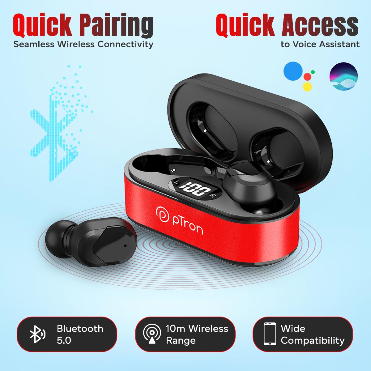 - Bluetooth 5.0 with Quick Pairing, 10m Stable Wireless Range, Auto-ReConnect & Wide compatibility with Smartphones/tablets | 28 Hours of combined playback time with the digital display charging case