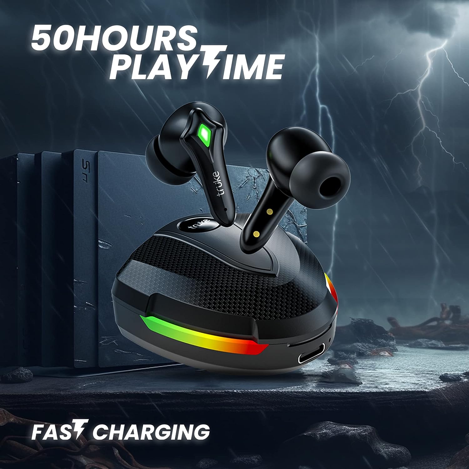 • [Long Battery Playtime] : Enjoy uninterrupted gaming marathons with the truke BTG Storm. With an impressive playtime of up to 50 hours* using the charging case, you can game to your heart's content without worrying about running out of battery. The earbuds themselves offer up to 10 hours of continuous playtime on a single charge, providing extended gameplay sessions without any interruptions. (*Battery life may vary depending on usage patterns and settings.)