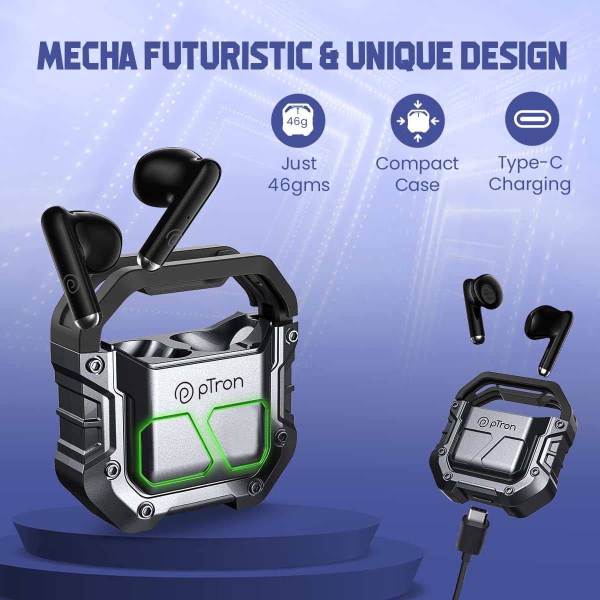 - Futuristic & pocket-friendly charging case for on-the-go earbuds charging; Type-C fast charging port; 1-year manufacturer warranty from the date of purchase