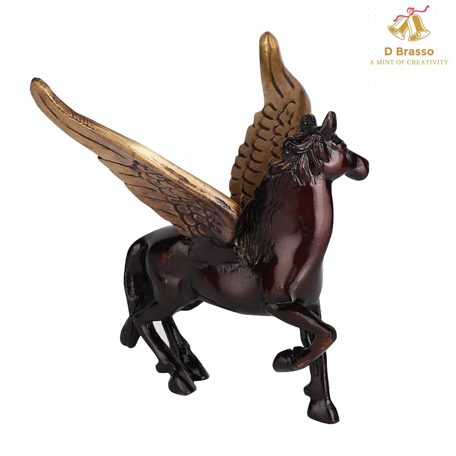 D Brasso Flying Angel Horse Brass Showpiece for Home Decor, Pegasus Animal Feng Shui Decorative Home Office Showpiece Figurine.