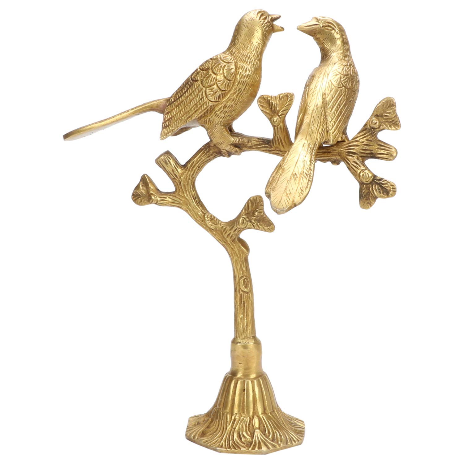 Kartique Brass Love Birds Sitting On Tree's Branch Couple Statue Decorative Bird Pair Sculpture Romantic Wedding Gifts | Height 10''