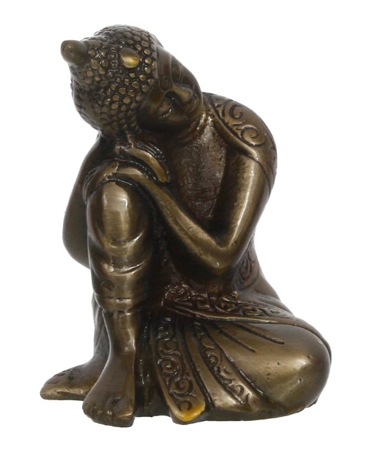 Package Content - One Metallic Antique Color Metal Resting Buddha on Knee