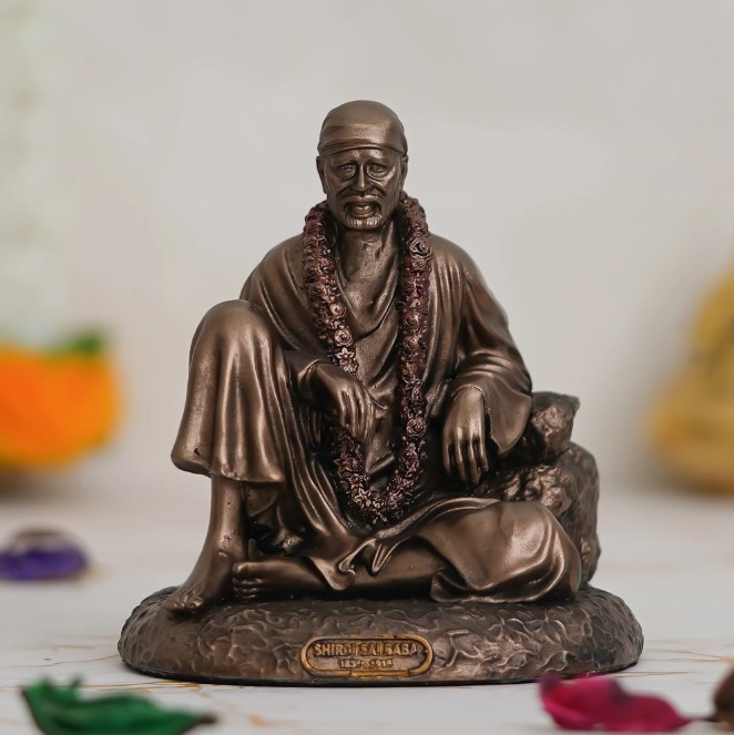 | Package Content - | Sai Baba Sitting Cold Cast Bronze Resin Decorative Figurine |