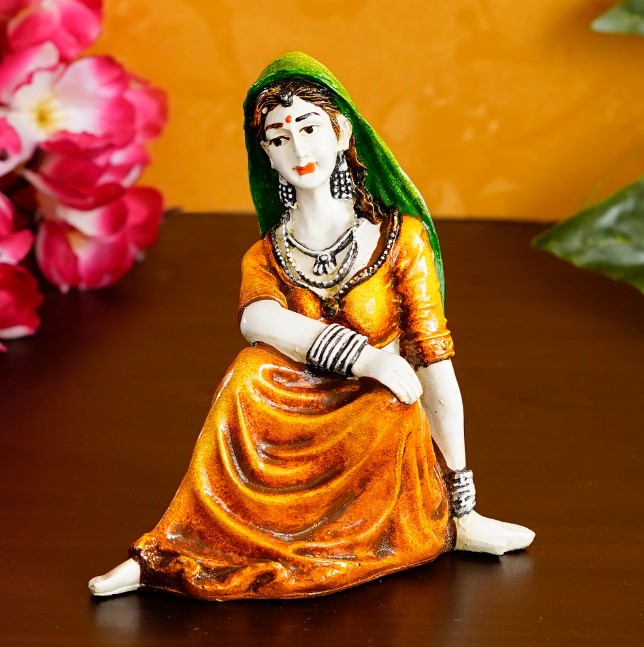 Product Description - Give artistic and royal touch to your home decor with this Resting Rajasthani Lady Handcrafted Decorative Polyresin Showpiece, this statue looks extremely classy and elegant. This artistic showpiece simply shows that how can a simple work of art turns into a master piece of craftsmanship. It can also serve as a great gifting option for your loved ones, family and friends. This figurine has been diligently handcrafted by proficient artisans of using various traditional techniques.