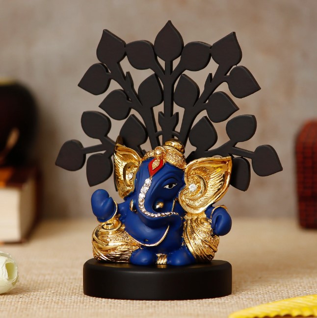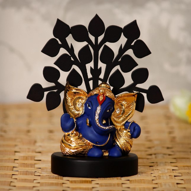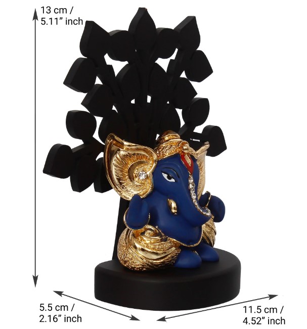 Package Content - One Gold Plated Blue Kaan Ganesha Decorative Showpiece with Wooden Tree for Home/Temple/Office/Car Dashboard