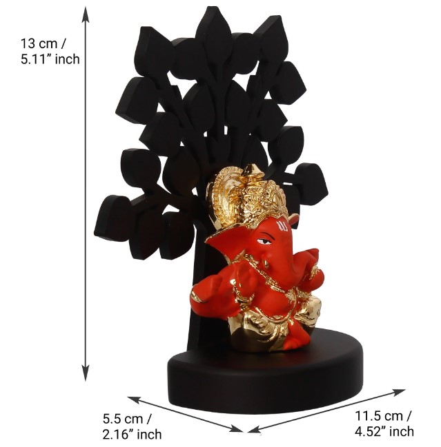Product Description - Lord Ganesha's idol is said to be fortunate when kept in the home temple, or on the car dashboard. Our orange, golden & black polyresin Lord Ganesha statue with the wooden tree for home, office & car dashboard is the best God idol that you can even gift to your friends and family members on festivities that also has a decorative covering attached that enhances the Idol look. You can find a variety of idols and figurines on our online portal that are a depiction of pure art and craftsmanship. Each showpiece is handcrafted using various ancient techniques by the artisans at the house of and is also a great gifting option for your loved ones. Our showpieces have been diligently handcrafted by proficient artisans of who are on a mission to take Indian Art and Culture into each home of India.