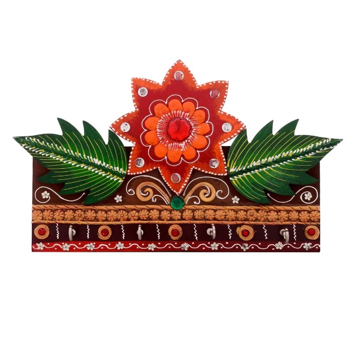 Product Description - Place your keys on this beautiful Papier-Mache Rose Leave Key holder. The key holder has 4 hooks for your house, car, garage and other keys. The key knobs have been carefully designed to hold your keys. This key holder can be hung at any place in your house to keep keys secured and can also be used as a wall decoration piece. It serves as a great gift, especially around religious celebrations and festivities. Each Key Holder has been diligently handcrafted by skilled artisans from the house of using various traditional techniques.