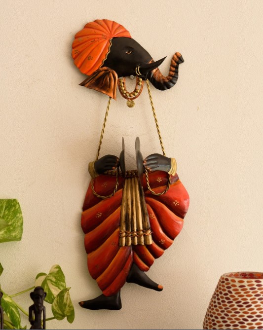 Package Content - One Lord Ganesha playing Manjeera Wall Hanging