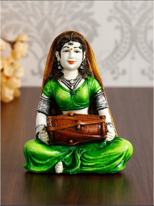 Product Description - Give traditional touch to your home decor with Rajasthani Lady Playing Dholak Handcrafted Decorative Polyresin Showpiece, this statue looks extremely classy and elegant. This artistic showpiece simply shows that how can a simple work of art turns into a master piece of . It can also serve as a great gifting option for your loved ones, family and friends. This statue has been diligently handcrafted by skilled artisans of using various conventional techniques.