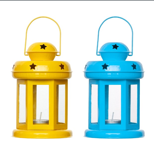 Product Description - Decorative tea light holders are in trend, especially the ones that have unique designs that stand as a great decor item during the festivals. They also help you decorate your home as well as the office space and enhance your festive decoration. Set of 2 Blue and Yellow Iron Tea Light Holder Lantern is the best for you to get your hands on. You can also gift this to your friends and family at festivals or other auspicious occasions. Diligently handcrafted using various ancient techniques by the artisans at , this is the most unique and decorative tea light holder that you can get.