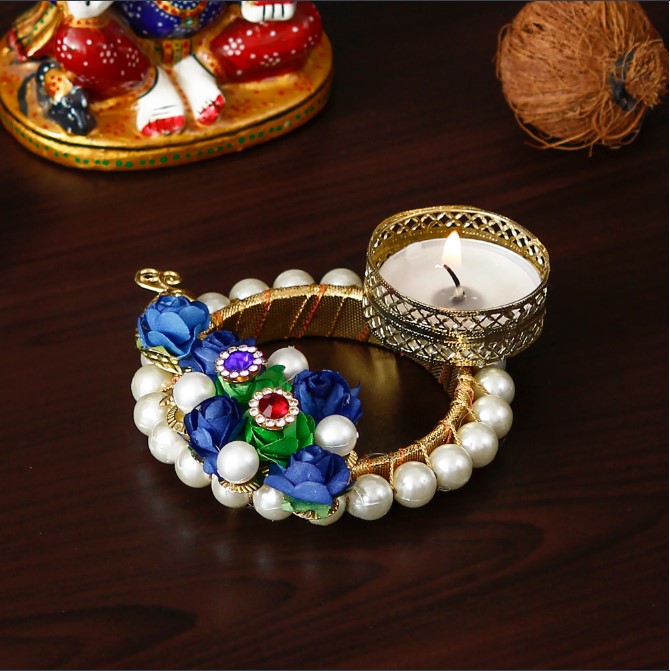 Product Description - Decorative tea light holders are in trend especially the one's that have unique designs stand as a great decor item during the festivals. They also help you decorate your home as well as the office space and enhances your festive decoration.Designer Handcrafted Floral Tea Light Holder is the best for you to get your hands on. You can also gift this to your friends and family on festivals or other auspicious occasions. Diligently handcrafted using various ancient techniques by the artisans at , this is the most unique and decorative tea light holder that you can get.