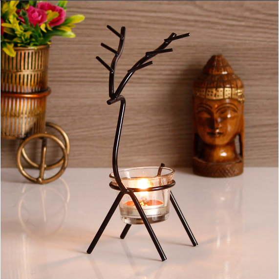 Product Description - Glorify your celebrations with black deer shape metal tea light candle holder or diya that helps you make your celebrations fun and memorable. These tea light holders will not fail to leave a lasting impression on your guest. Made from metal this wonderful piece of art will surely accentuate your home decor. It serves as a great gift, especially around religious celebrations and festivities. Each tea light holder is diligently handcrafted by skilled artisans from the house of using various traditional techniques.
