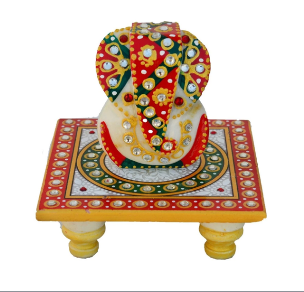 Product Description - Marble carved Lord Ganesha on chowki brings a soothing look to your home, office & pooja room. Shining like the full moon, Ganapati is always dear to his devotees and is definitely pleasant to look upon. Adorn your home with this beautiful statue which has been hand painted for an exclusive look. This makes a wonderful gift on special occasions like house warming, festive seasons and return gifts during marriages. Made from marble, this product is high in quality and absolutely durable. This Marble Chowki is diligently handcrafted by skilled artisans from the house of using various traditional techniques.