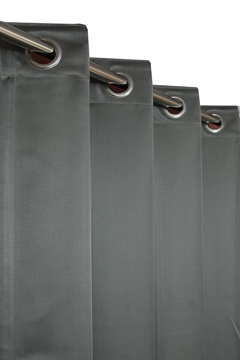 Blackout Faux Silk Superior 2 Piece Plain Solid Long Door Curtains,Grey, 8 Feet