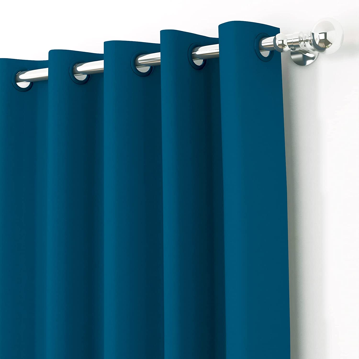 Room Darkening Thermal Insulated Eyelet Noise Reducing Blackout Faux Silk Solid Window Curtain, 5 feet, Navy Blue, Pack of 1