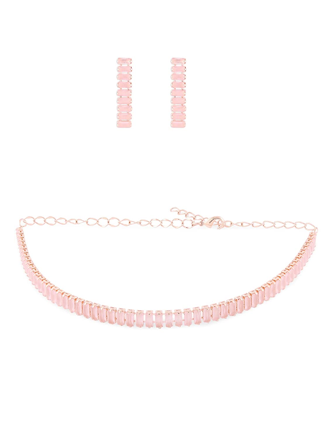 - Features: Fashion diamond jewellery set have grown in popularity due to their captivating designs and versatility. There’s nothing more alluring than a sparkling cubic zirconia necklace adorning your neck. This diamond necklace will help you steal the spot light. It enhances the elegance and fashion quotient of any attire.