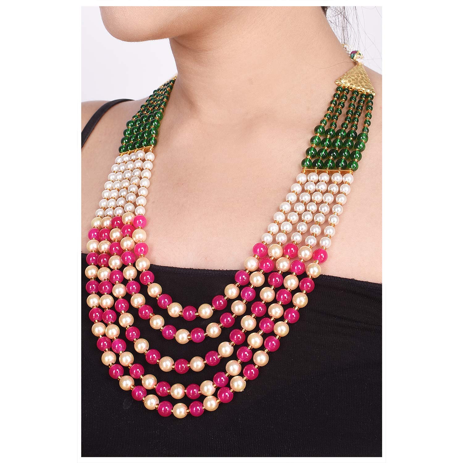 - The Necklace is made of Green White Pink Pearl Stones with supreme lusture and shine