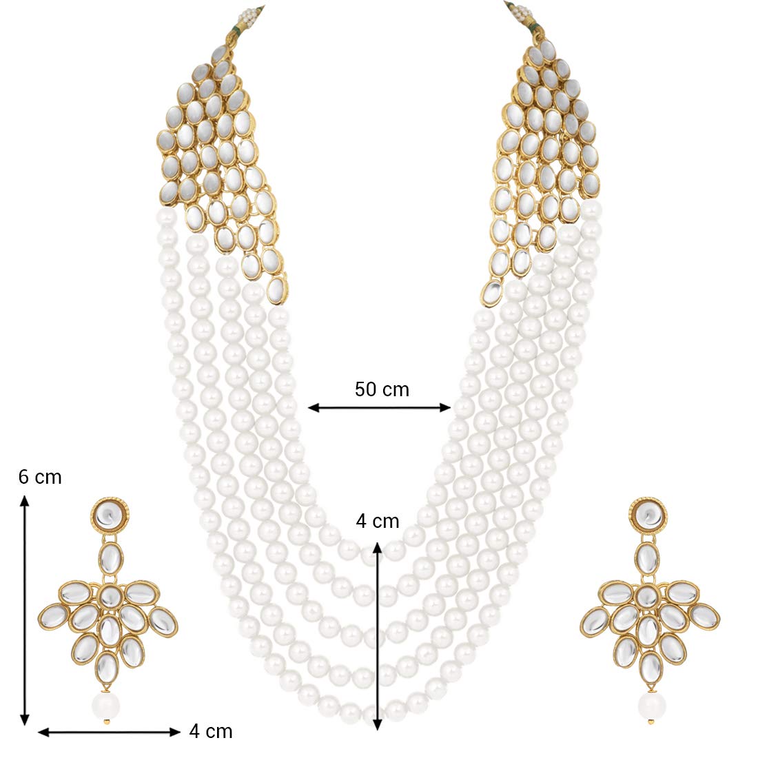 - Graceful and flawless: give yourself that beautiful look and make others jealous with our traditional necklace set. It has a high-grade imitation kundan stones which gives it an edge over other earrings. This is a one of a kind design which will go with all types of dresses