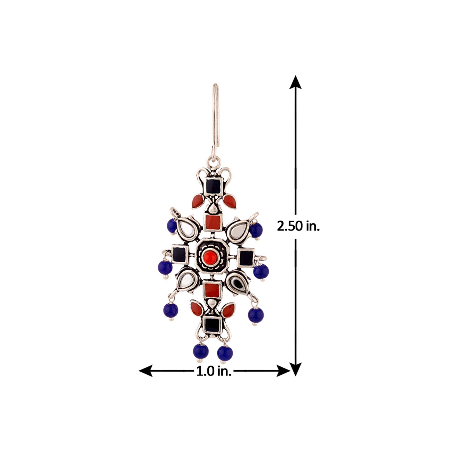 Silver Plating Kesar Tribal Jewelry Inspired Earrings Blue Red Pearl Beads Studed for Women and Girls
